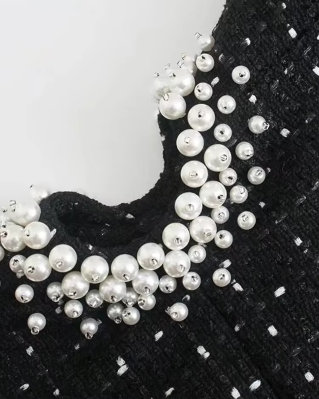 Zwarte Mini Jurk met Parels – Elegant, Vintage en Chique