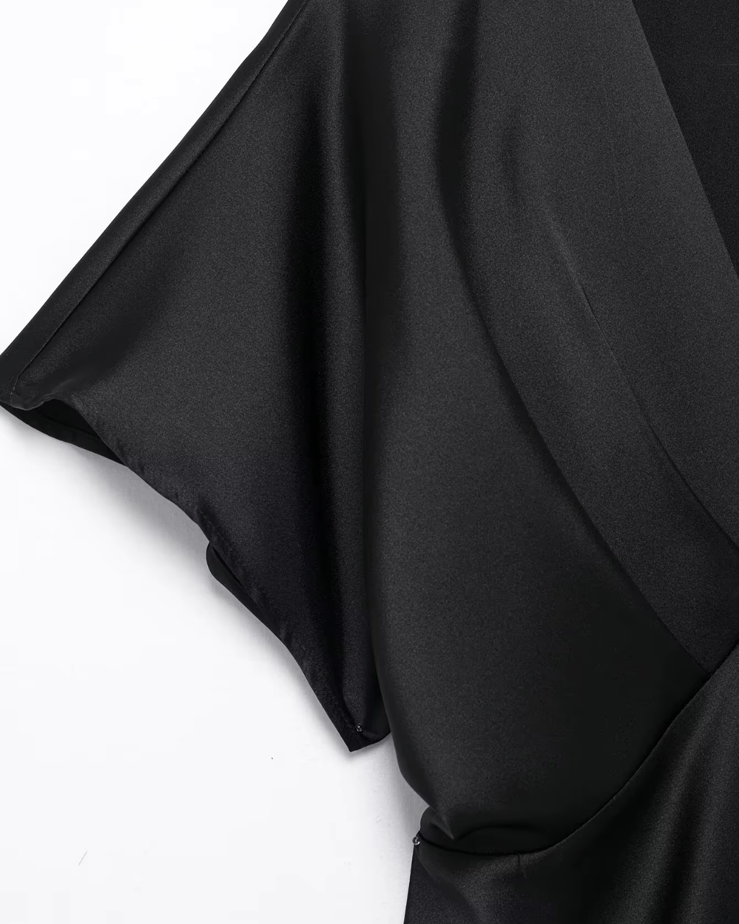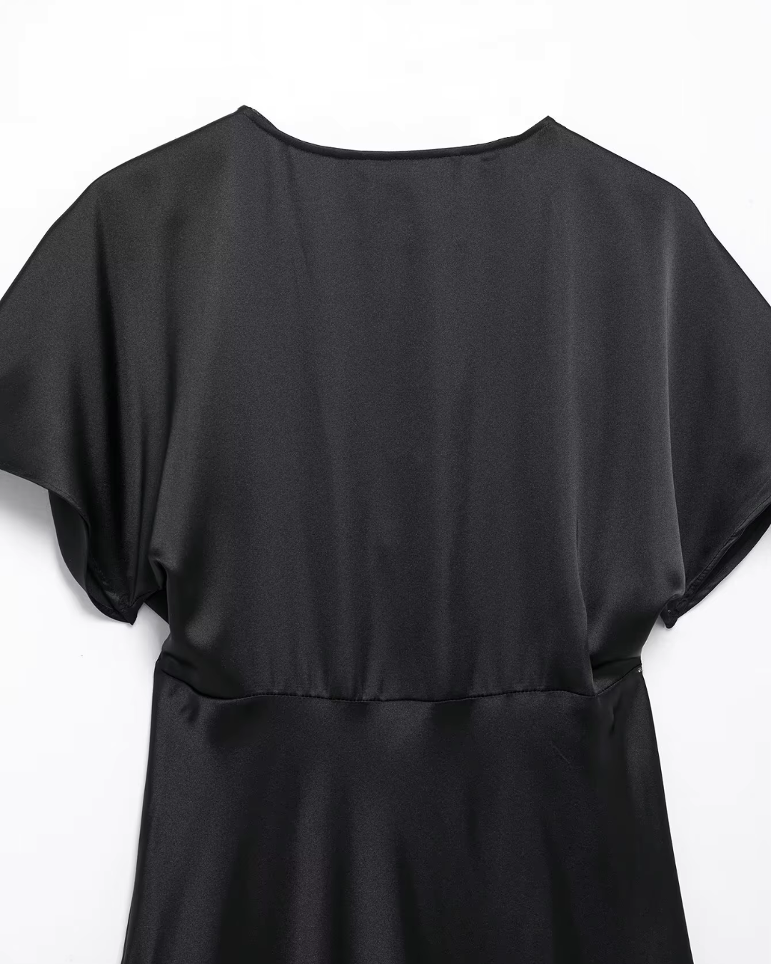 Vintage Satijnen Zomerjurk met V-Hals en Plooidetail – Elegant, Tijdloos en Mooi in Beweging