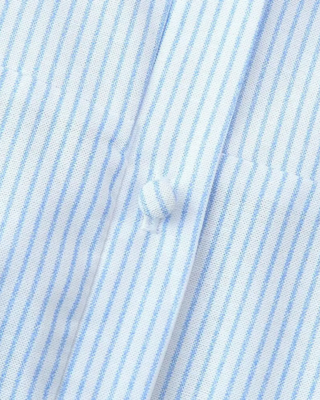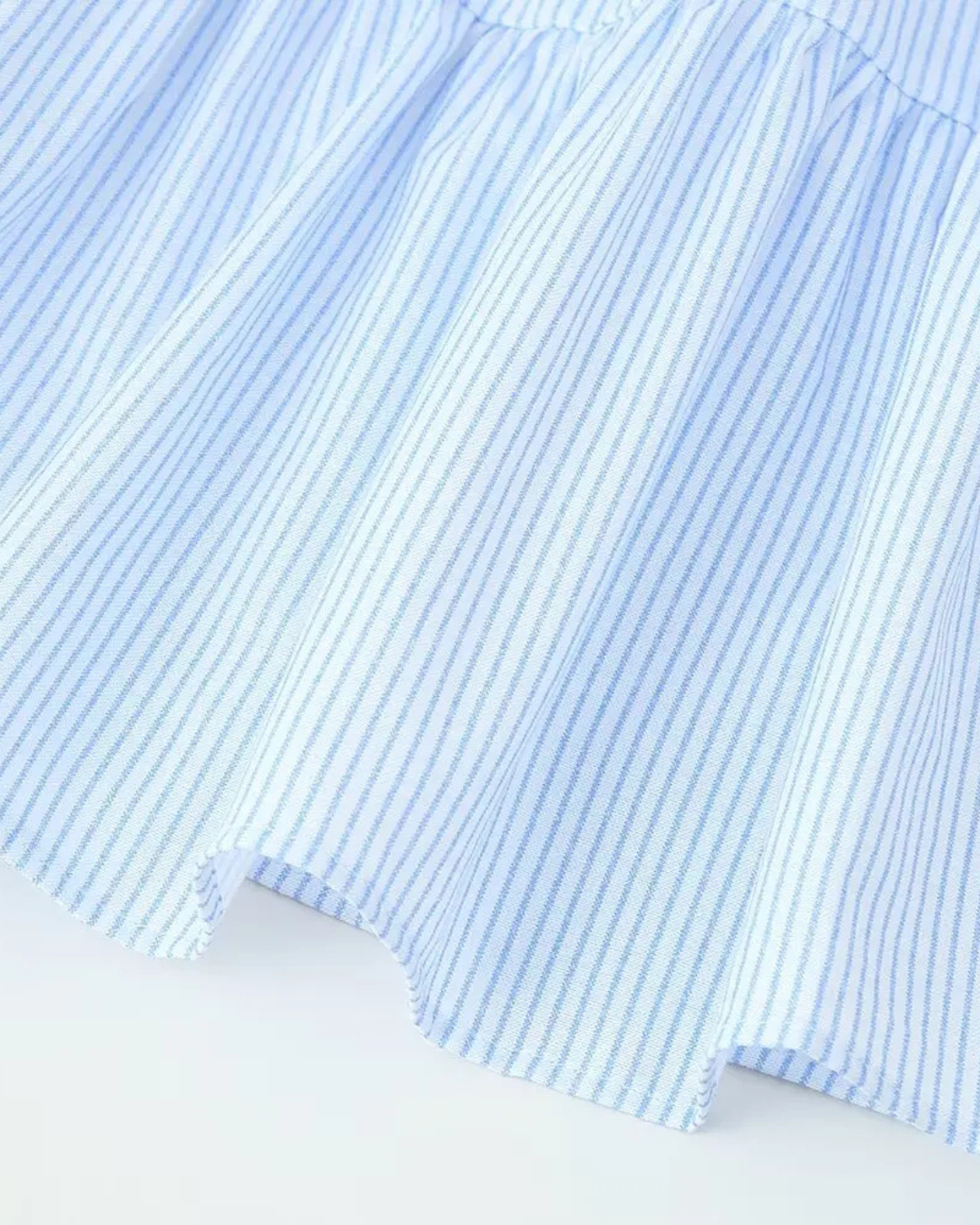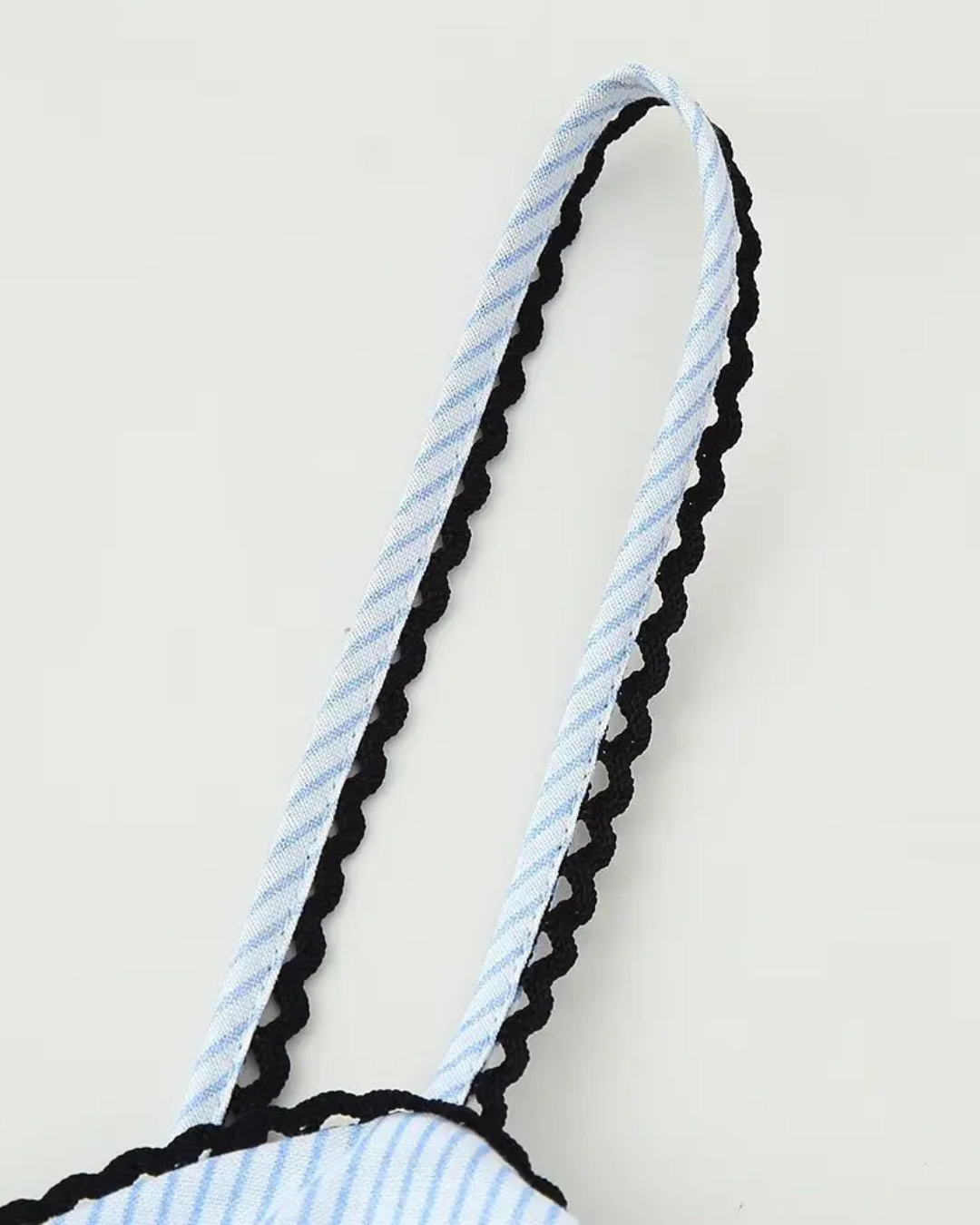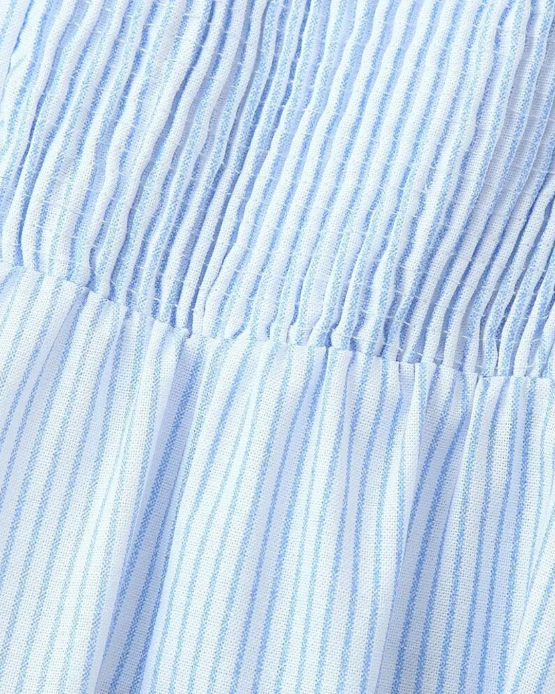 Deze elegante midi-jurk is de perfecte combinatie van verfijning en zomerse charme. Het mouwloze ontwerp met diepe V-hals en contrasterende kanten details zorgt voor een vrouwelijke en stijlvolle uitstraling. De geplooide rok en frisse blauwe strepen maken deze jurk ideaal voor stranddagen, feestjes of vakantieavonden.