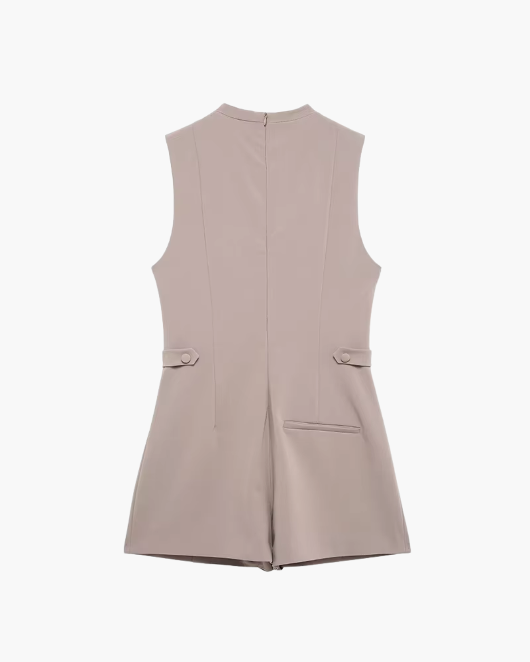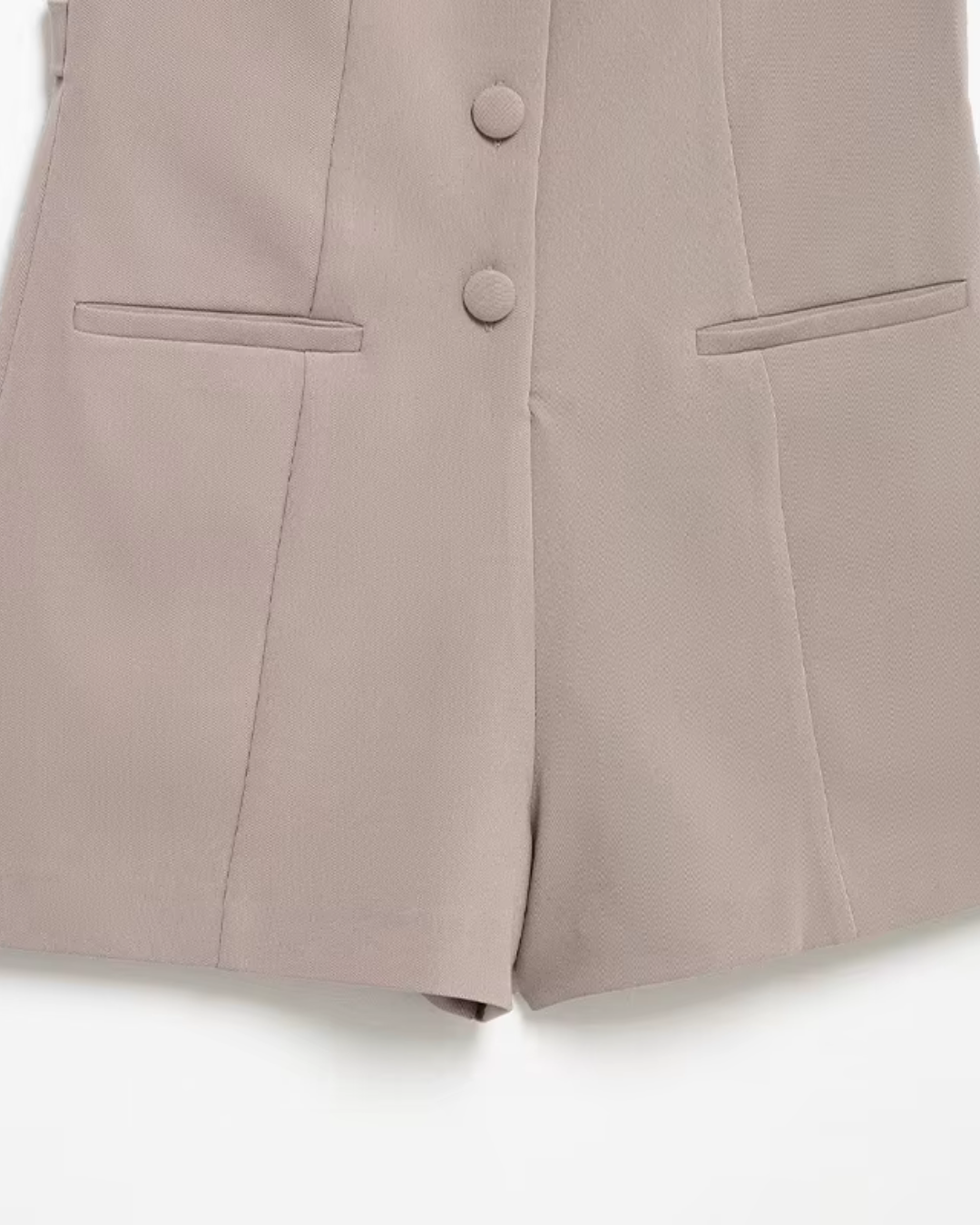 Kaki Single Breasted Mini Playsuit - Vintage Chic
