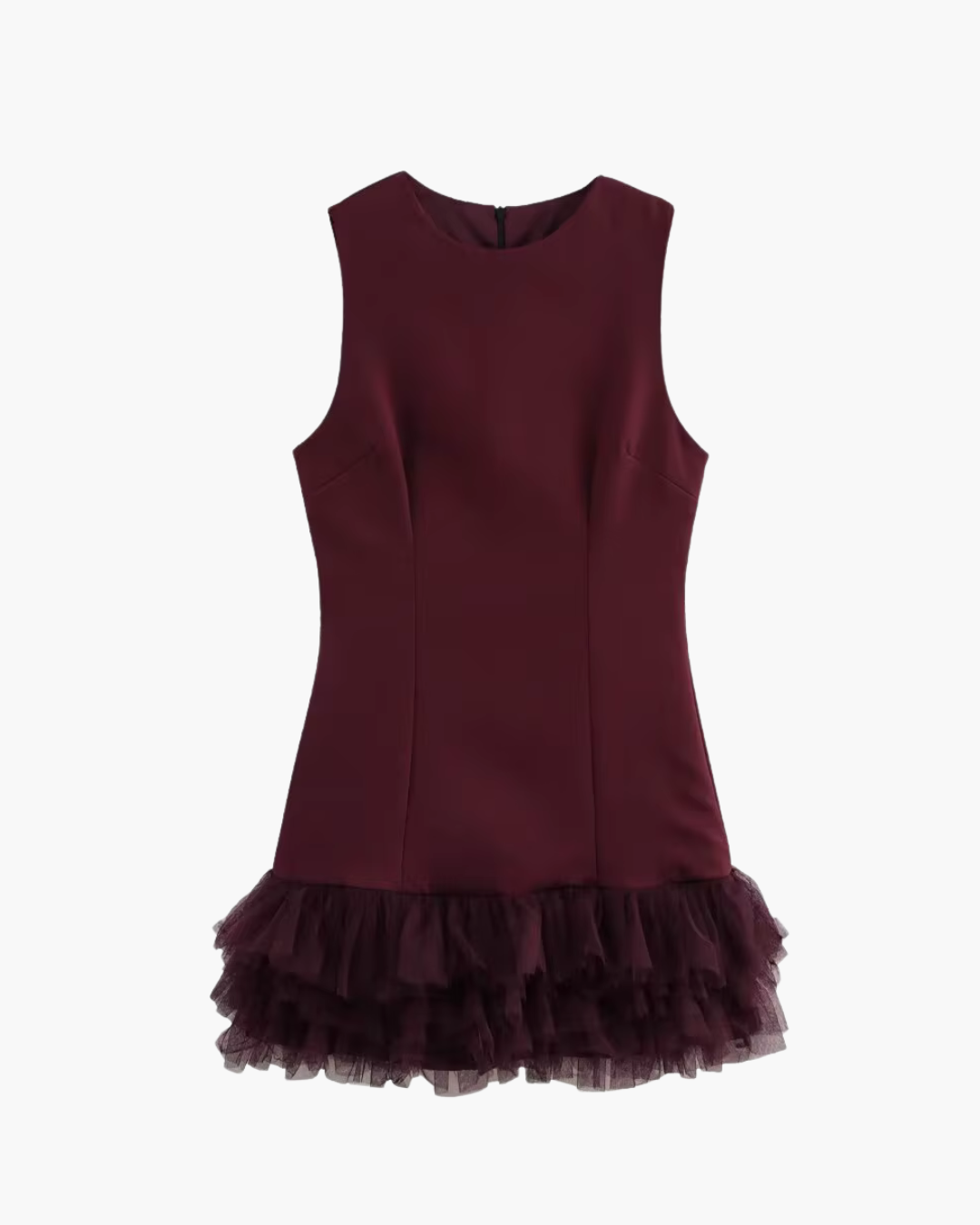 Deze elegante korte jurk combineert eenvoud met verfijnde details. Het ronde halsontwerp en de mouwloze snit zorgen voor een tijdloze uitstraling, terwijl de tule splicing een vrouwelijke en moderne touch toevoegt. Dankzij de ritssluiting en de slanke pasvorm sluit de jurk mooi aan en is hij geschikt voor zowel casual gelegenheden als feestelijke momenten.