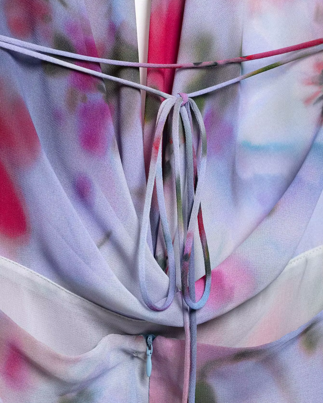 Geïnspireerd op vintage charme en zomerse elegantie, is deze mouwloze halterjurk een perfecte mix van retro vibes en moderne pasvorm. De slanke snit accentueert je figuur op subtiele wijze, terwijl de open rug en het luchtige silhouet zorgen voor een onweerstaanbaar vrouwelijke uitstraling. Met een kleurrijke print en een comfortabele ritssluiting aan de achterkant is dit jouw nieuwe go-to jurk voor zonnige dagen.