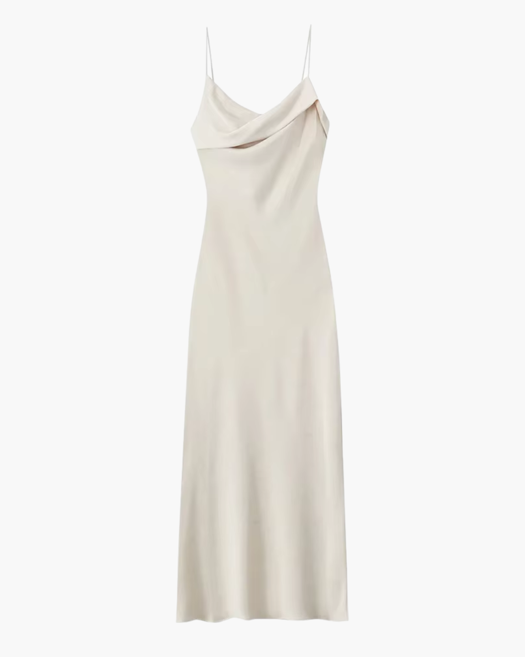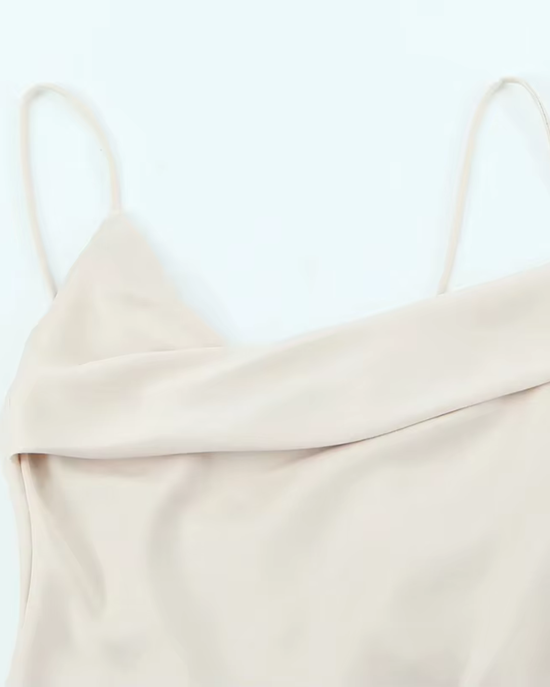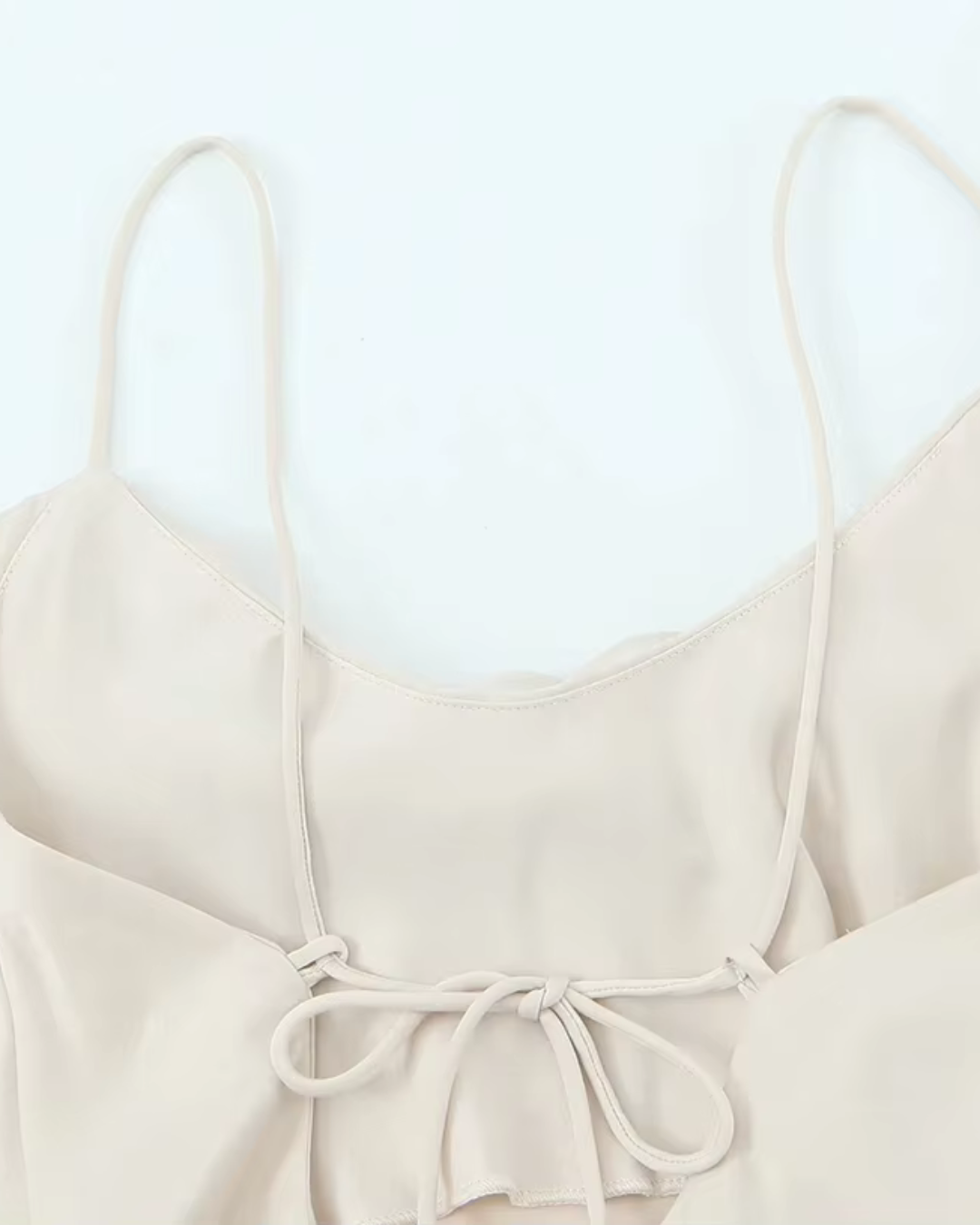 Satijnen Avondjurk met Spaghetti Bandjes – Elegant, Gelaagd & Stijlvol Vrouwelijk
