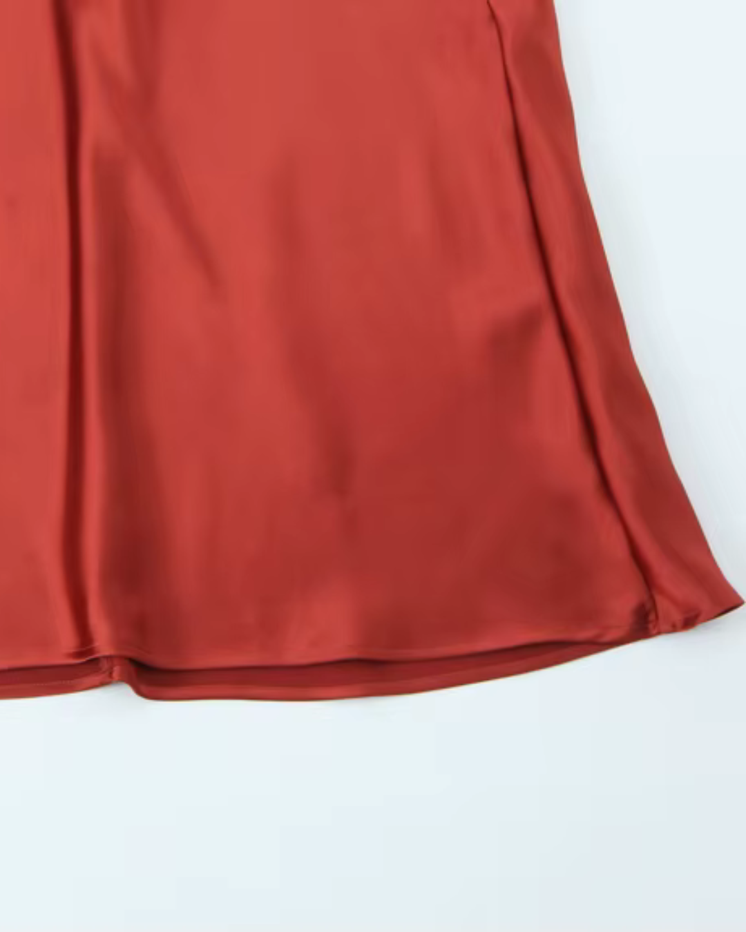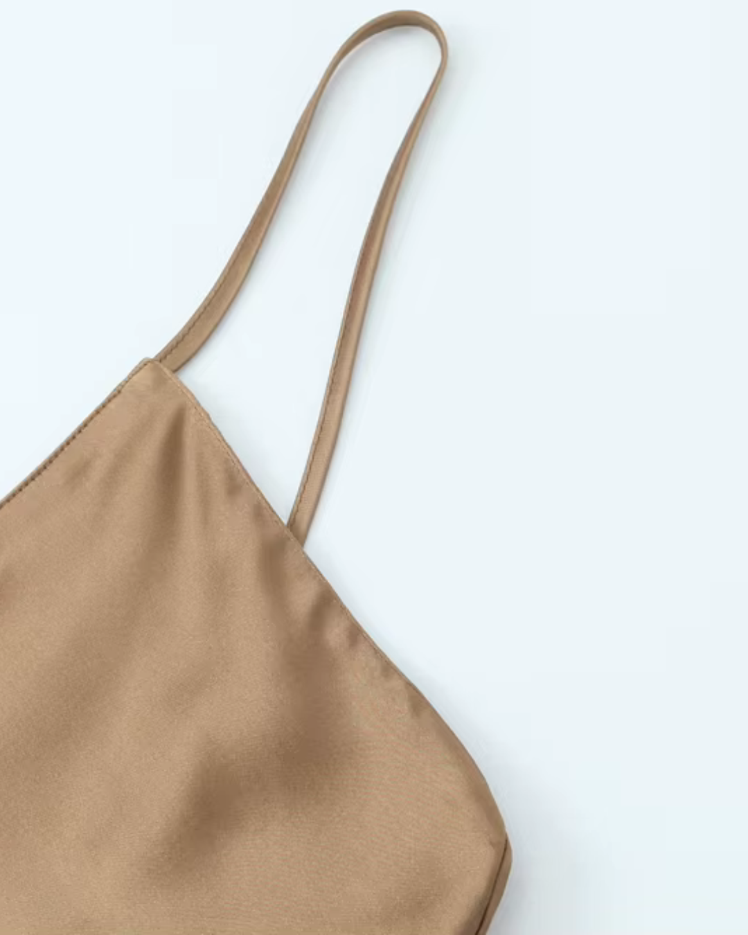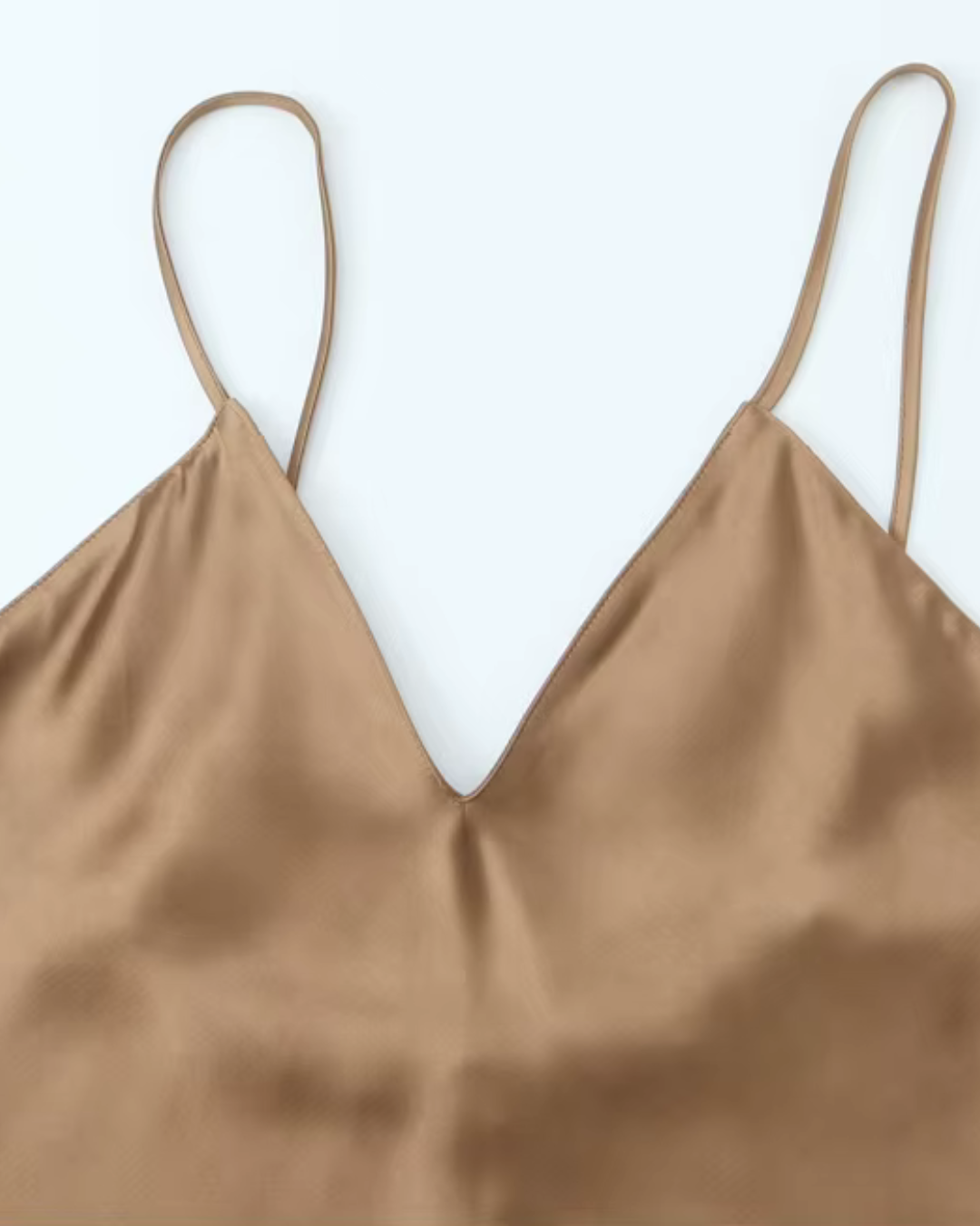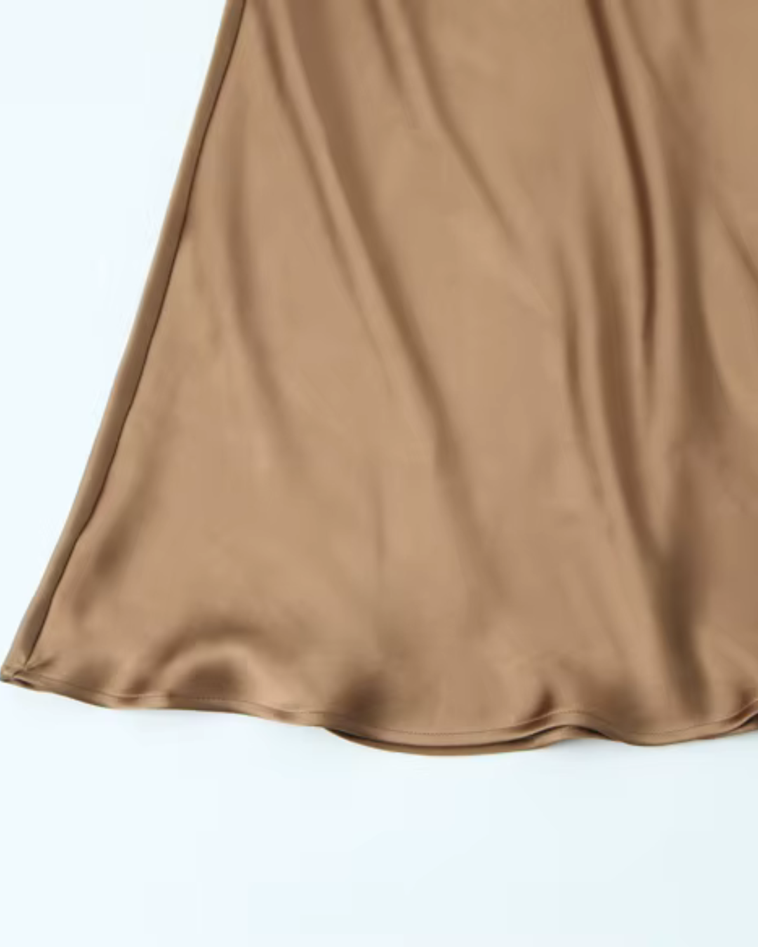Deze elegante satijnen onderjurk is ontworpen voor dames die houden van een chique en vrouwelijke uitstraling. Met een verfijnde V-hals, subtiele ruches en een flatterende maxi-lengte is deze jurk perfect voor avondfeestjes in de lente of een stijlvolle herfstdag.