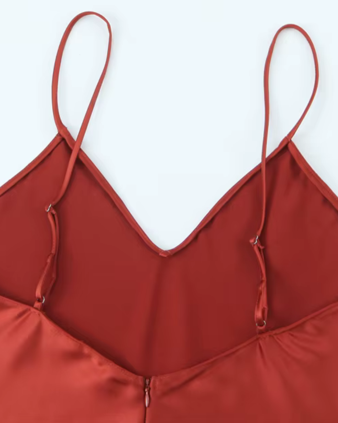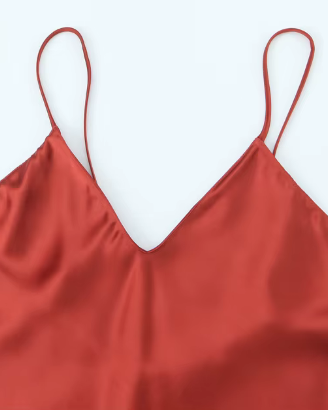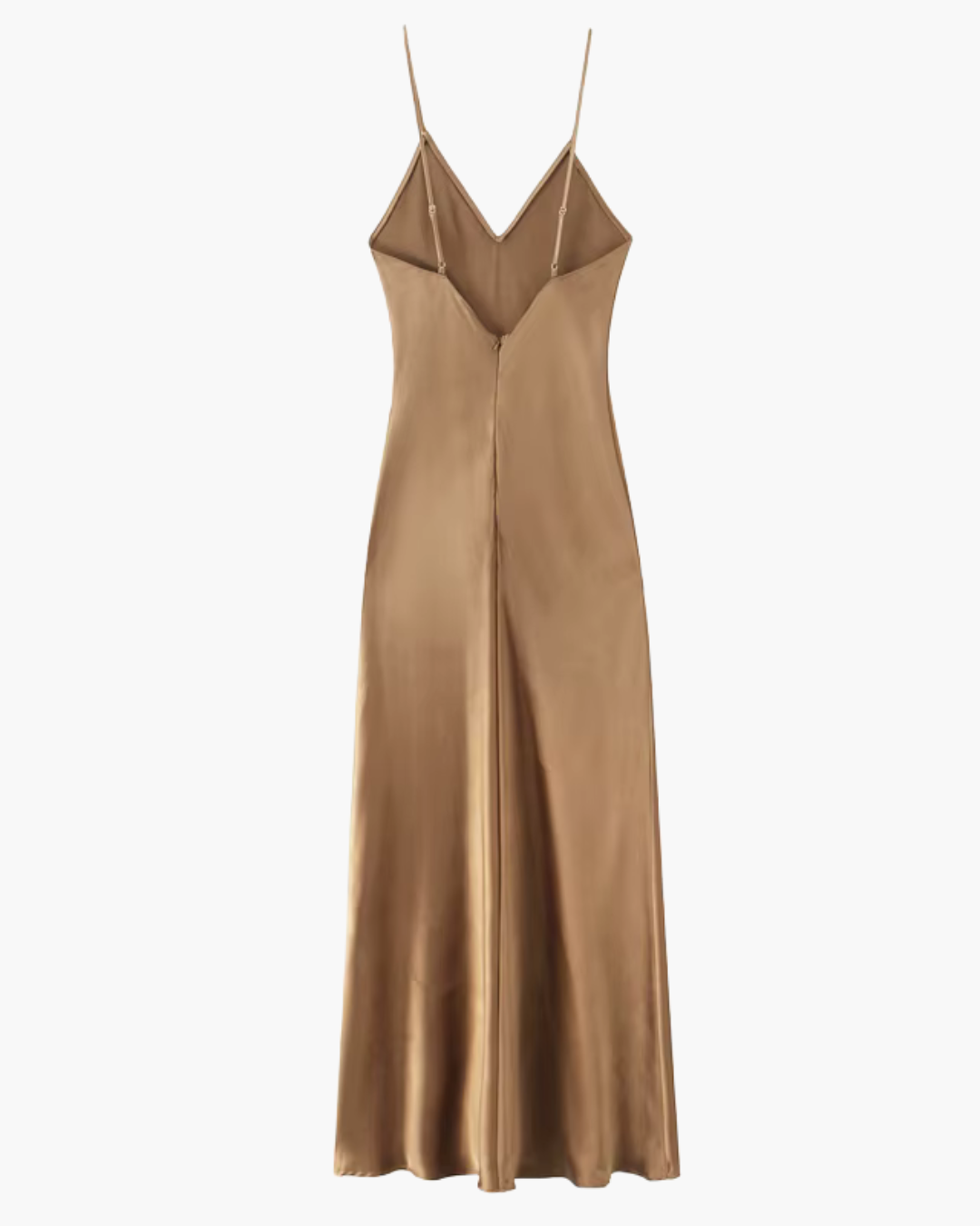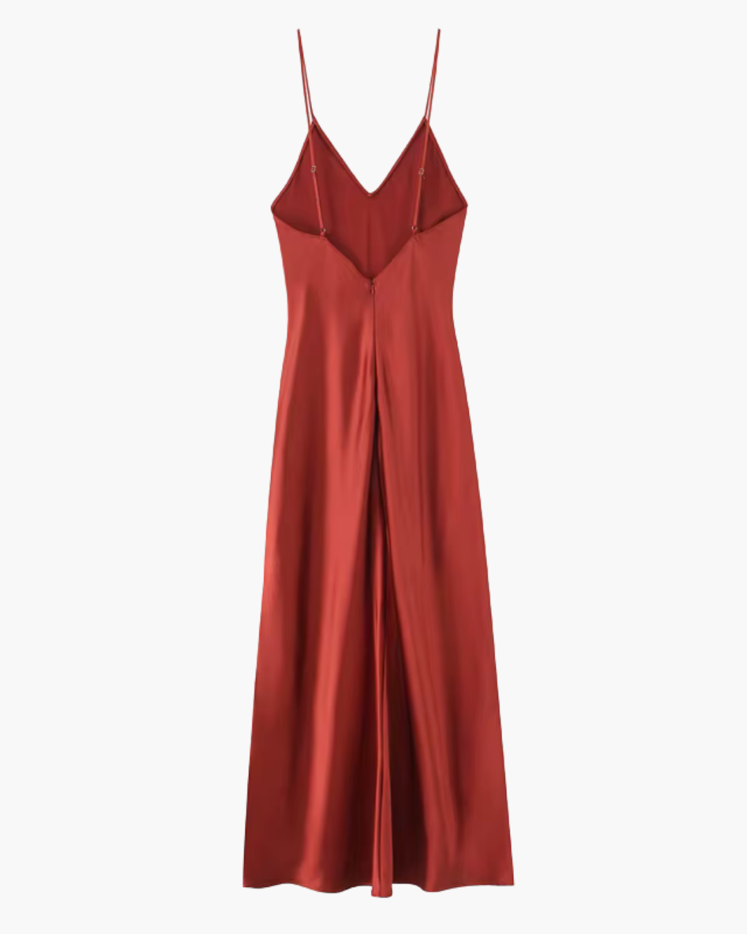 Satijnen Avondjurk met V-Hals en Dunne Bandjes voor Dames