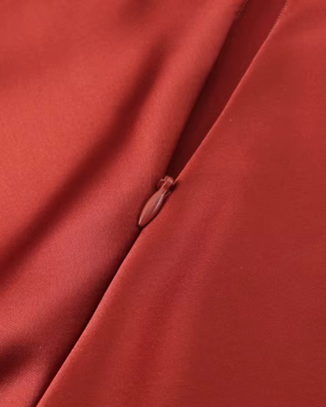 Satijnen Maxi-Jurk met V-Hals – Chic, Ruches & Perfect voor Lente- of Herfstfeestjes