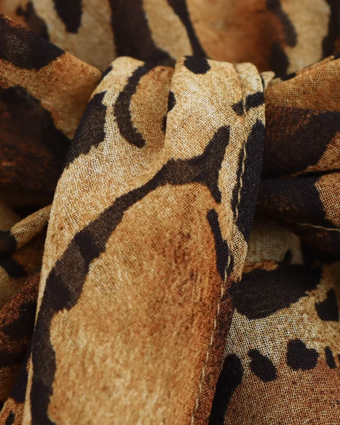 Ga voor een stijlvolle, gedurfde look met deze dierenpatroon midi-jurk. Het verfijnde silhouet in combinatie met de opvallende print maakt deze jurk perfect voor zowel casual als chique gelegenheden. De midi-lengte en subtiele zijopening geven de jurk een speelse en elegante uitstraling, terwijl de flatterende pasvorm je figuur prachtig accentueert.