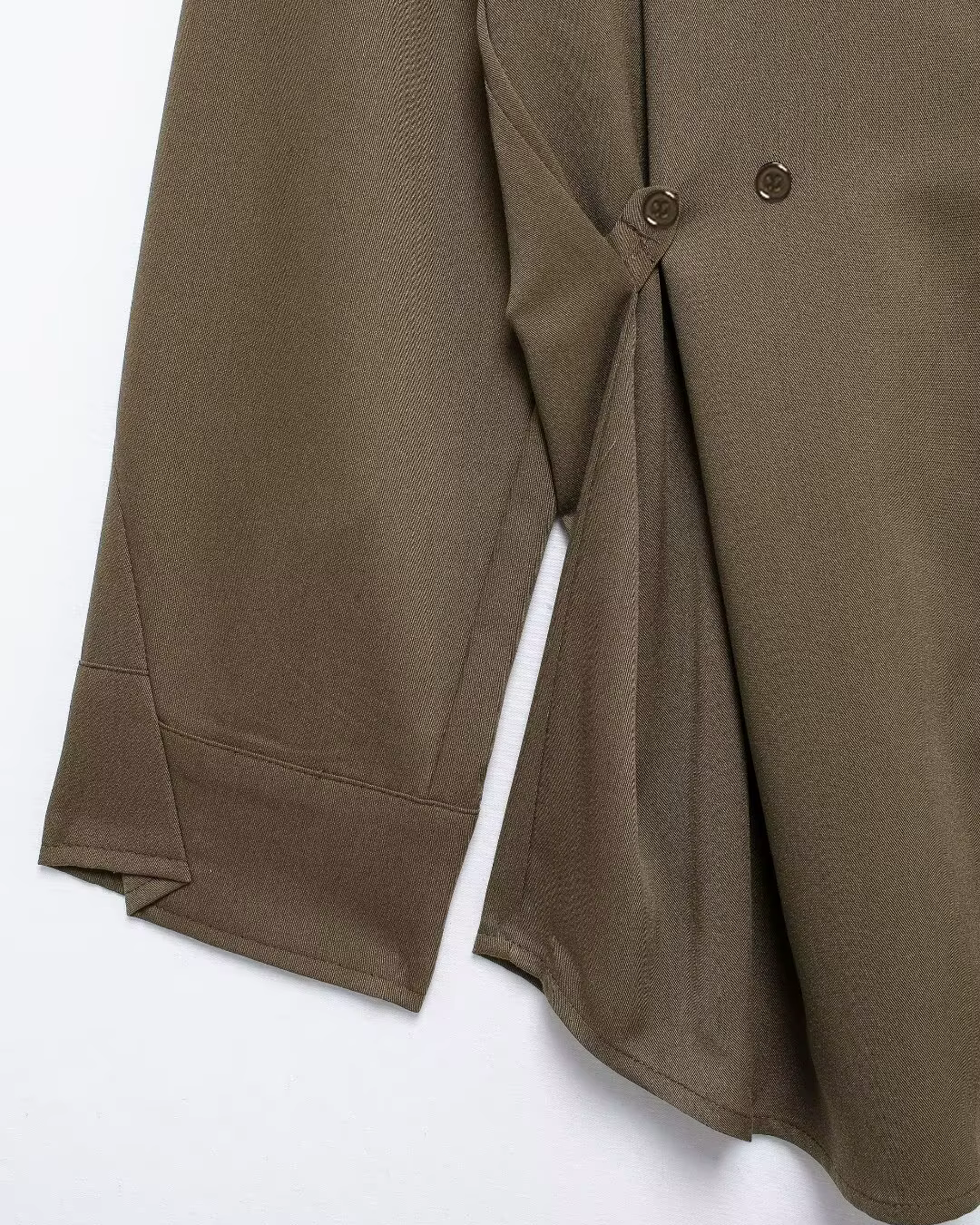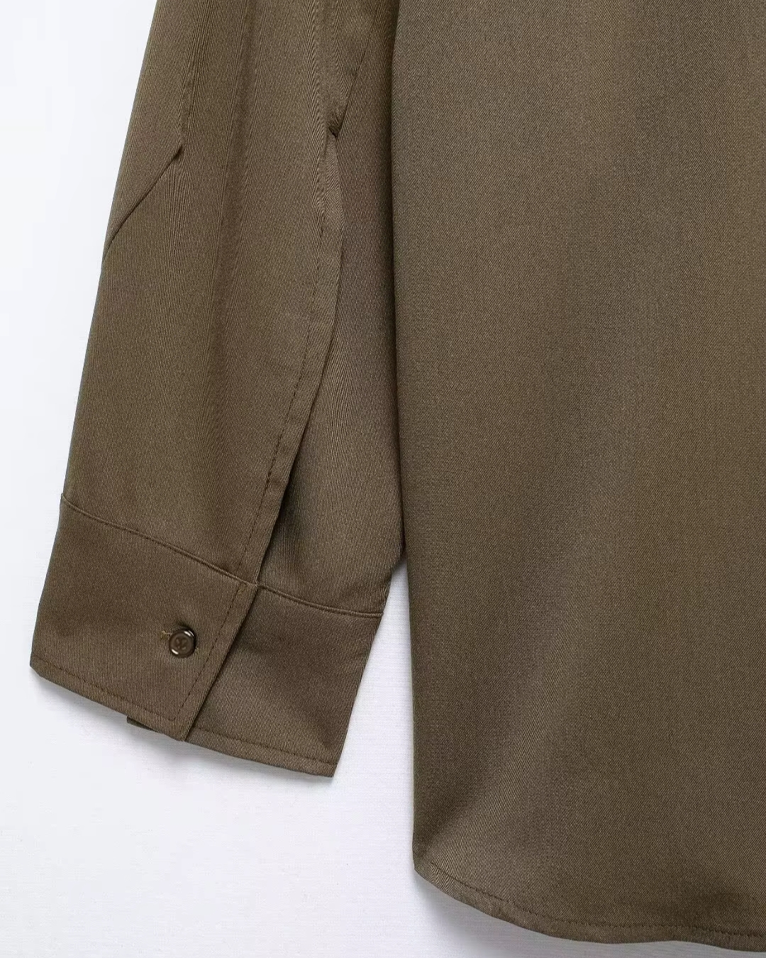 Vintage Bruine Chique Blouse met Verstelbare Knopen voor Dames