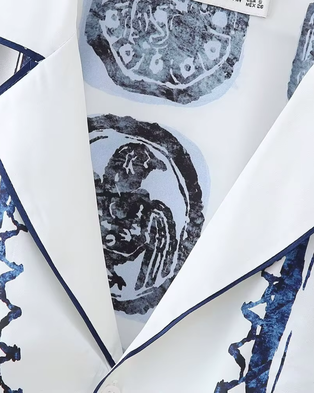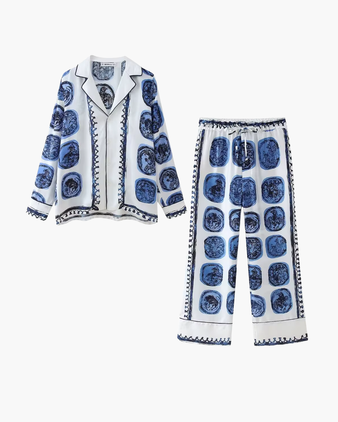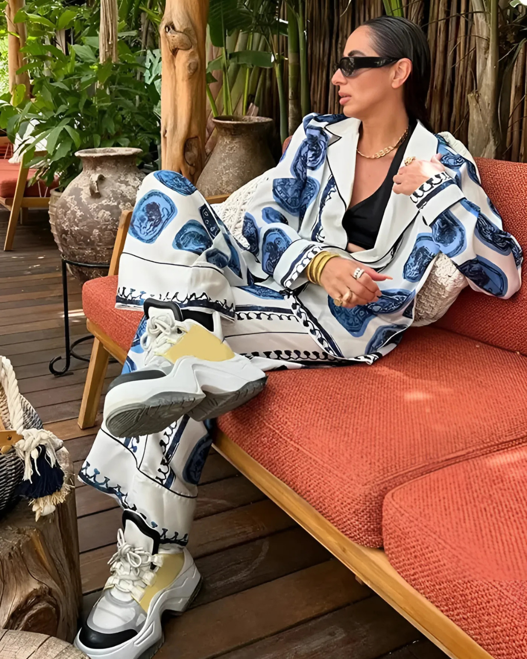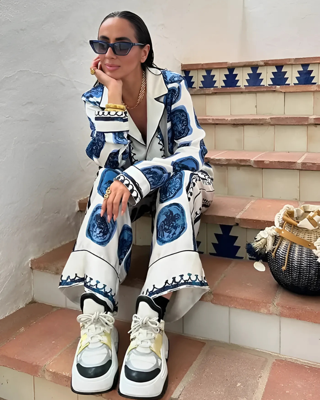 Vintage Casual Dames Pak met Print en Wijde Pijpen voor Dames