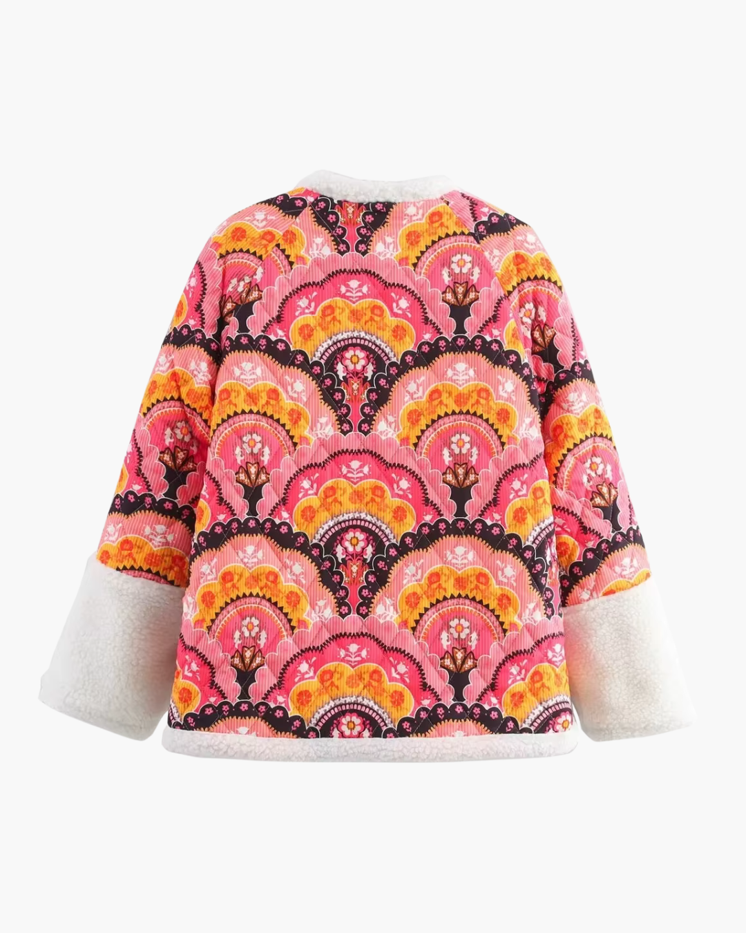Vintage Lamswool Winterjas met Retro Print voor Dames